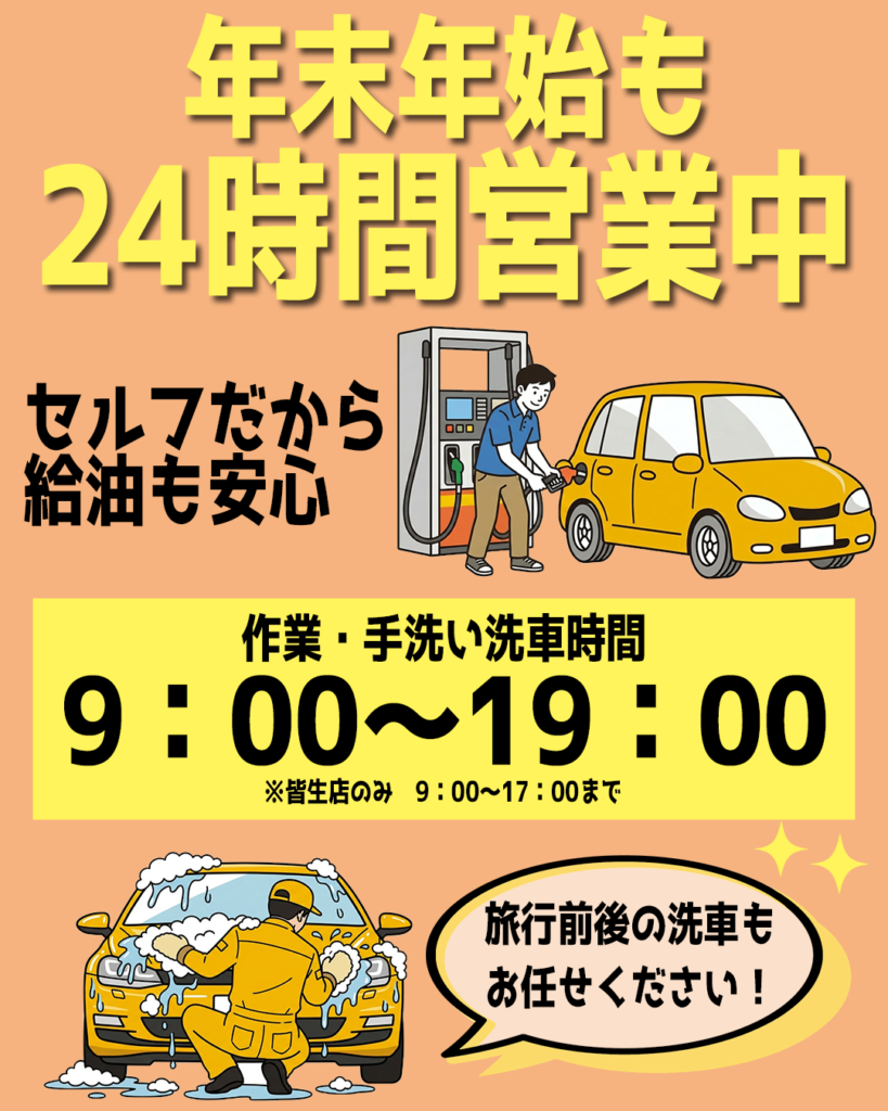 各ガソリンスタンド(サービスステーション)は、年末年始も「通常通り営業」しております。